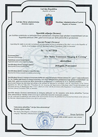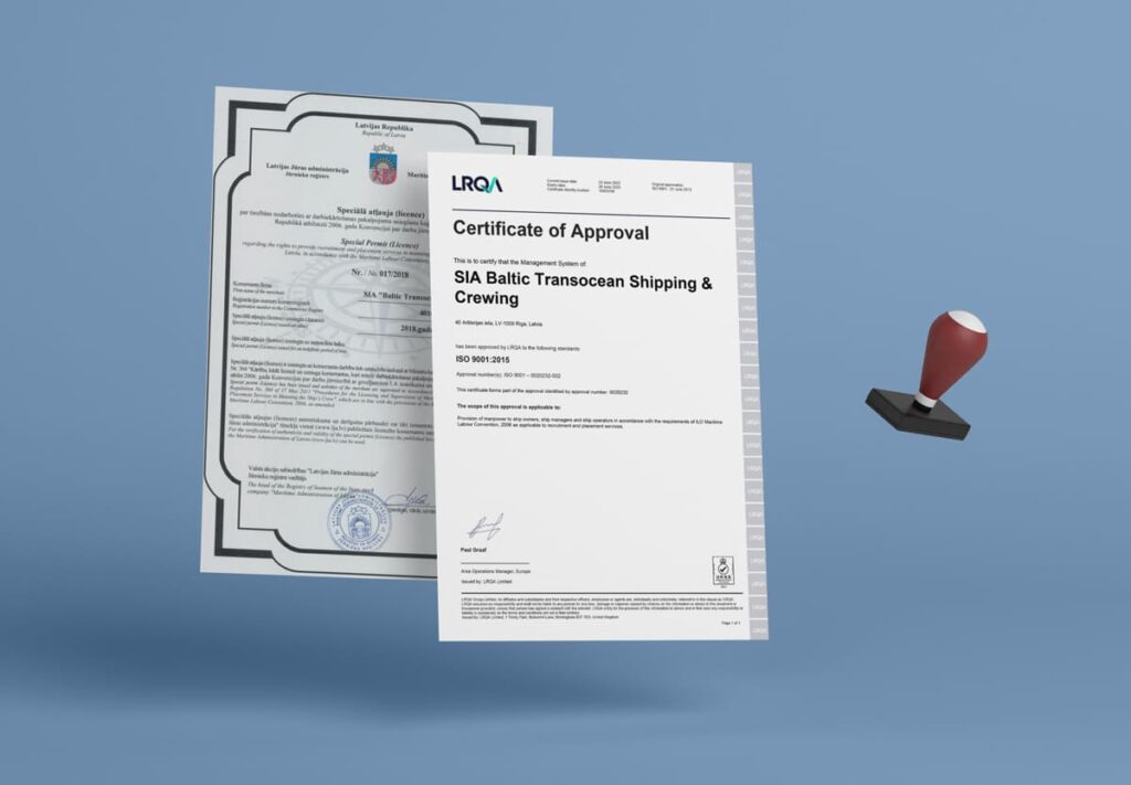 BTSC is licensed by the Latvian Maritime Administration and certified according to ISO 9001:2015.